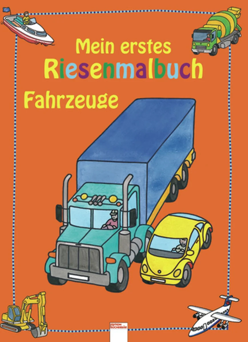 Nicolas, Birgitta: Mein erstes Riesenmalbuch - Fahrzeuge. Die große Parade der Lieblingsfahrzeuge: Vom Bagger über den Traktor bis zu Rennauto, Motorrad und Hubschrauber ist hier alles versammelt. Mit Buntstiften, Wachsmalstiften oder Wasserfarben kann alles fröhlich bunt gestaltet werden.