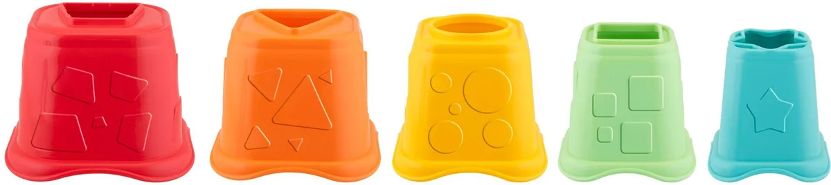 ie herausfordernde 2 in 1 Version des beliebten Stapelspiels. Formensortierer und Stapelbecher. Entählt 5 Becher und 5 bunte Formen. Stapel die Becher aufeinander, um einen Turm zu bauen. Sortiere und setze die 5 Formen in die jeweils passende Öffnung der Becher ein. Stecke die 5 Becher ineinander vom größten zum kleinsten. Hilft, die Hand-Augen-Koordinationsfähigkeiten zu entwickeln und mit Farben und Größen vertraut zu werden. Hergestellt aus 80% recyceltem Kunststoff aus industriellem Produktionsüberschuss. Es werden verschiedene Farbkombinationen unter gleicher Artikelnummer angeboten. Die Abbildungen können demnach vom Original abweichen. Ab 6 Die herausfordernde 2 in 1 Version des beliebten Stapelspiels. Formensortierer und Stapelbecher. Entählt 5 Becher und 5 bunte Formen. Stapel die Becher aufeinander, um einen Turm zu bauen. Sortiere und setze die 5 Formen in die jeweils passende Öffnung der Becher ein. Stecke die 5 Becher ineinander vom größten zum kleinsten. Hilft, die Hand-Augen-Koordinationsfähigkeiten zu entwickeln und mit Farben und Größen vertraut zu werden. Hergestellt aus 80% recyceltem Kunststoff aus industriellem Produktionsüberschuss. Es werden verschiedene Farbkombinationen unter gleicher Artikelnummer angeboten. Die Abbildungen können demnach vom Original abweichen.