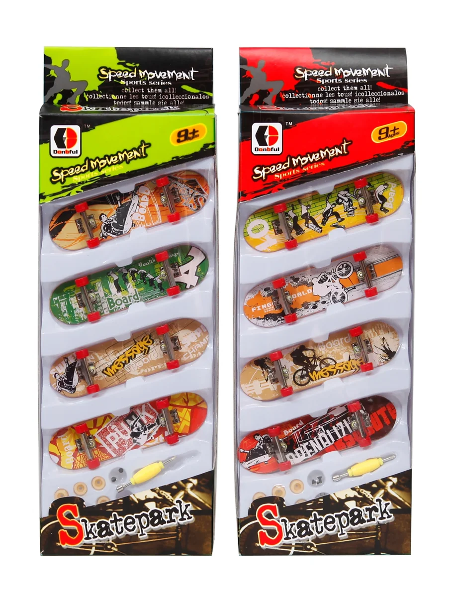 4er-Pack. Mit Ersatzreifen und Werkzeug. Ab 5 Jahren. 4er Pack Fingerskateboard mit Ersatzreifen und Werkzeug