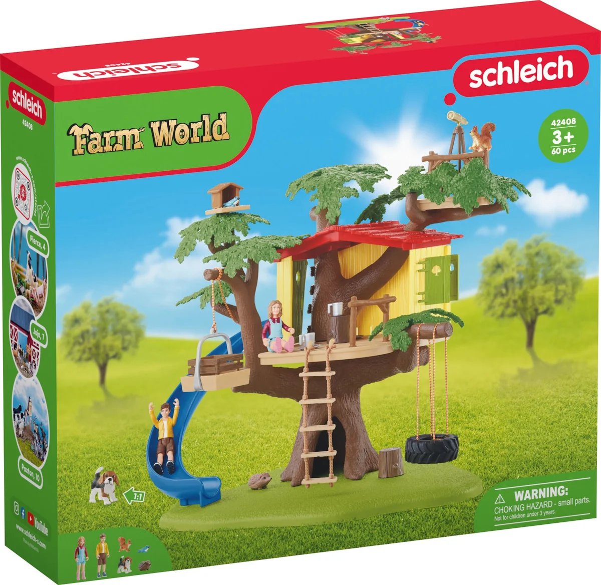 Im Schleich® Baumhaus können Ben und Sarah stundenlang toben, spielen und picknicken. Wer hat noch nicht von einem eigenen Baumhaus geträumt? Das Set beinhaltet jede Menge Zubehör und Funktionen für langen Spielspaß. Mit 2 menschlichen Figuren, 4 Tieren und Zubehör. Die Schleich® Figuren sind alle detailgetreu modelliert, liebevoll bemalt und stehen für pädagogisch wertvolles Spielen.