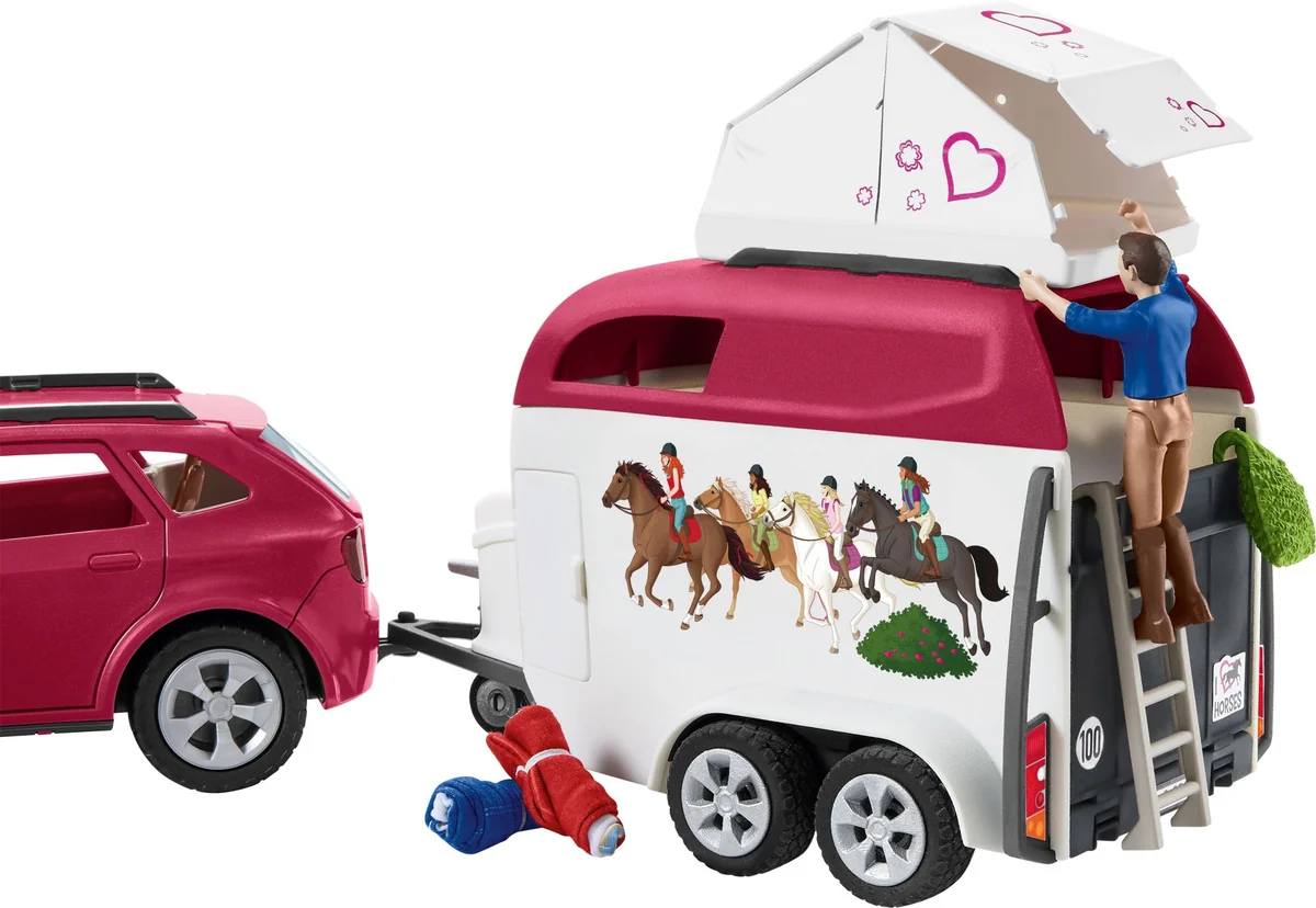 Die schleich® Figuren sind alle detailgetreu modelliert und stehen für pädagogisch wertvolles Spielen. Das Abenteuer mit Auto und Pferdeanhänger von Schleich® Horse Club bringt Hannah und ihren Vater zu ihrem ersten großen Turnier.