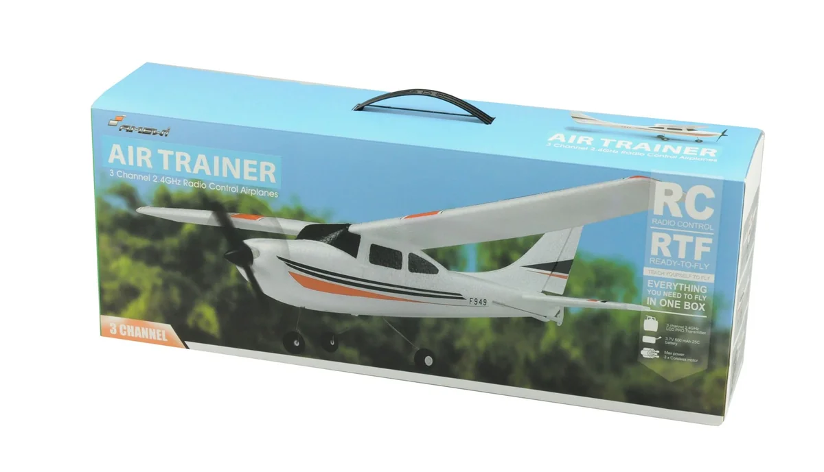 Der Air-Trainer ist das perfekte Flugzeug für Einsteiger und für alle ambitionierten Hobby- Piloten. Es zeichnet sich durch sehr gutmütige Flugeigenschaften und eine robuste und bewährte Materialtechnik aus. Die moderne 2,4 GHz Fern- steuerung gehört ebenso zum Lieferumfang wie ein 500mAh LiPo Akku mit dem passenden Ladegerät. Flugspaß direkt aus der Verpackung. Der Rumpf und die Tragflächen bestehen aus dem in der Modellbau- szene sehr beliebten und schlagzähem EPO-Material. Und für den Fall der Fälle liegt sogar ein Ersatz- propeller bei. Der für seine Größe sehr kraftvolle 3-fach coreless Motor ermöglicht tolle Flugmanöver wie Loopings- oder Turns. Der Air-Trainer wird RTF (ready to fly) ausgeliefert, nach nur wenigen Momenten kann der Himmel erobert werden. Technische Daten: Länge: 393mm Spannweite 500 mm Gewicht 58 g Höhe: 132mm 3 Kanal 2,4 GHz LCD Pro Fernsteuerung 3 x coreless Motor 3,7 V 500 mAh 25C LiPo Akku Flugzeit bis 25 Min. Steuerung: Mode 2 (Gas links) Lieferumfang: 1 x Air Trainer Flugzeug (RTF) 1 x Landegestell 1 x 3,7V 500mAh/25C LiPo Akku 1 x LiPo Ladegerät über USB 1 x Ersatzpropeller 1 x Schraubendreher 1 x Bebilderte Anleitung (dt. und engl.) Hinweis: Für die moderne 2,4 GHz Fernsteuerung werden noch 6 x Mignon 1,5V Batterien benötigt. (z.B. die hochwertigen AMEWI Alkaline, Art. 28099)