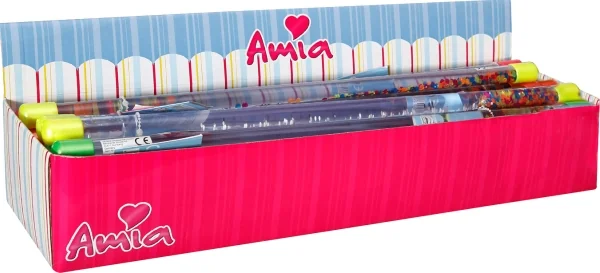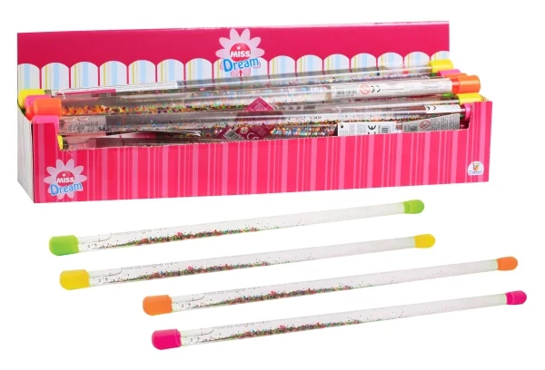 Vier verschiedenen Ausführungen. Länge: ca. 46 cm. Für Kinder ab 3 Jahren. Jeder Stab ist mit tollen Glitzerplättchen und Kugeln gefüllt. 4-fach sortiert im Display. Länge ca. 46 cm. Für Kinder ab 3 Jahren.