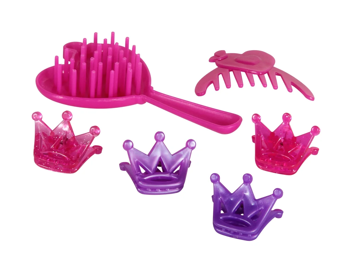 Amia Puppe mit Haar, Größe ca. 33 cm. Inklusive Zubehör wie Bürste, Spangen und Zopfbänder. Das Haar ist leicht kämmbar. Für Kinder ab 3 Jahren.