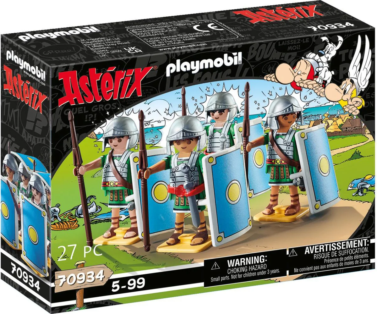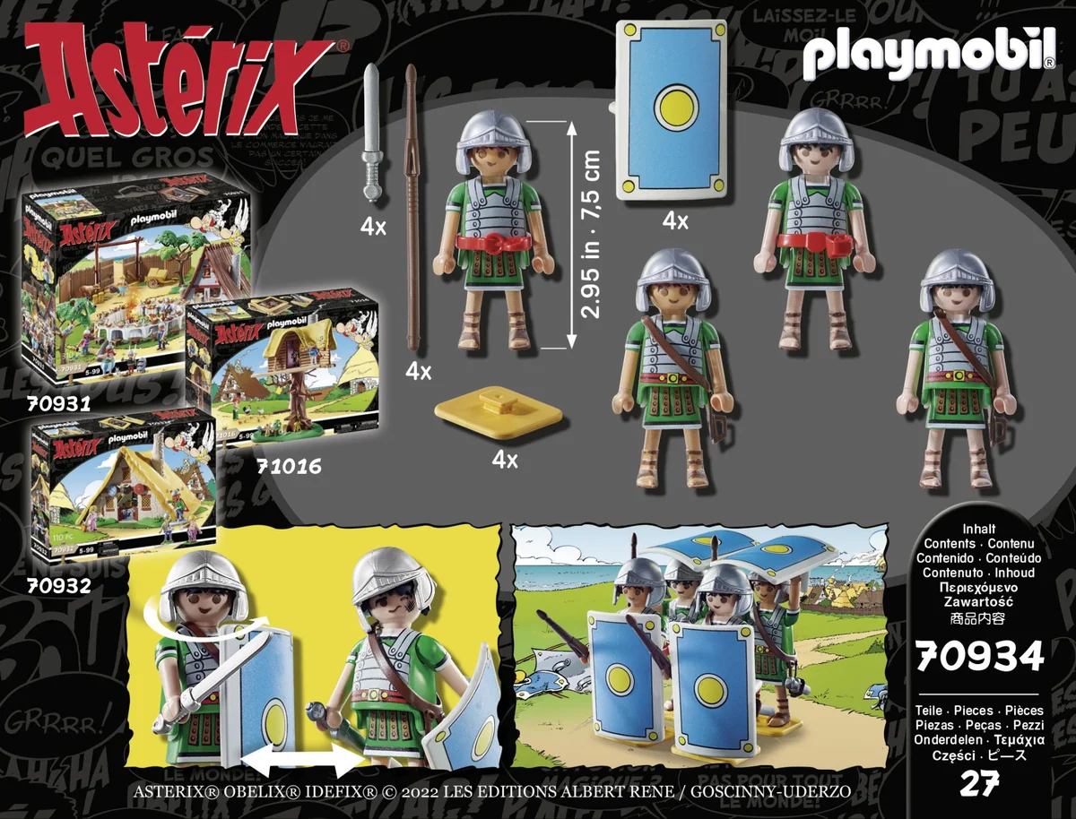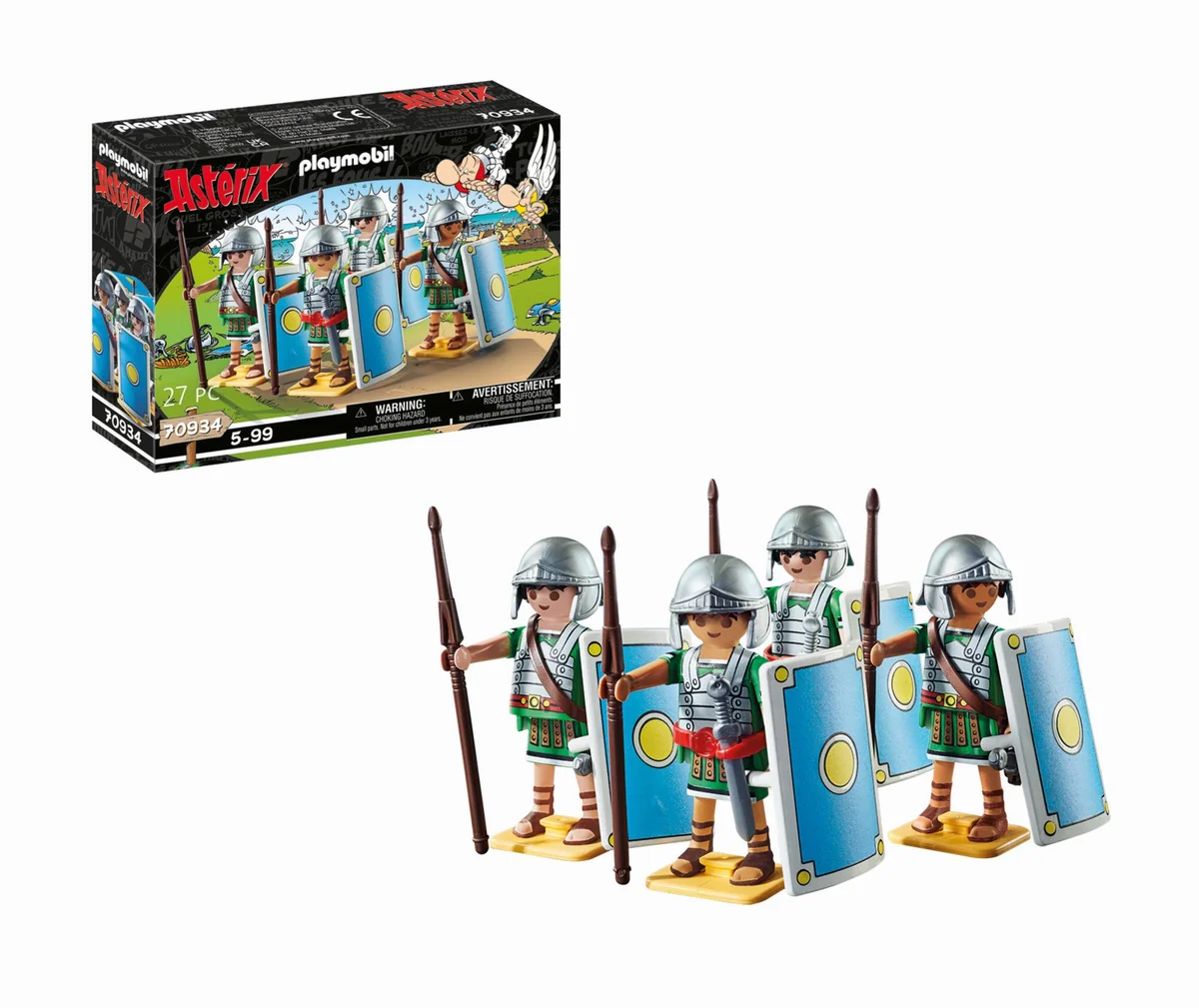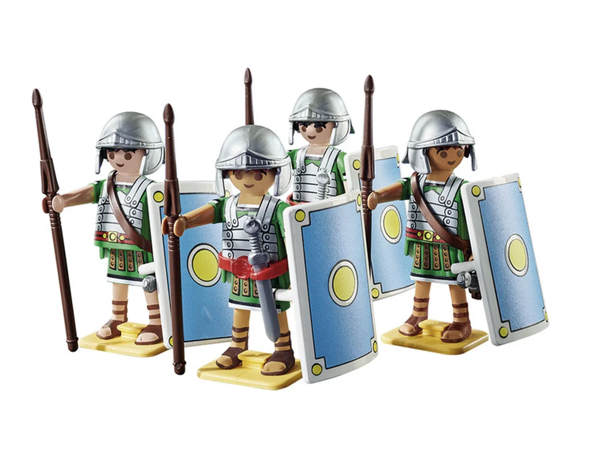 Mit ihren Schilden können die vier römischen Soldaten die ''Schildkrötenformation'' bilden.