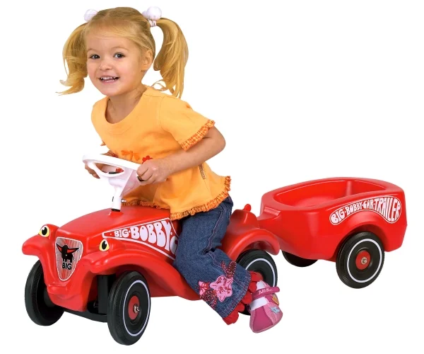 Der BIG-BOBBY-CAR-TRAILER ist das spielstarke Zubehör für alle BIG-BOBBY-CAR. Im Inneren des robusten Anhängers ist viel Platz für alle wichtigen Utensilien der kleinen Fahrer. Abgerundete Ecken und Kanten sorgen für ein sicheres Spielvergnügen. Der robuste Anhäng er lässt sich leicht mit dem enthaltenen Sicherheitskupplungsstift an allen BIG-BOBBY-CAR (New + Classic) befestigen. Maße ca. 50x29x24 cm. Ab 1 Jahr.