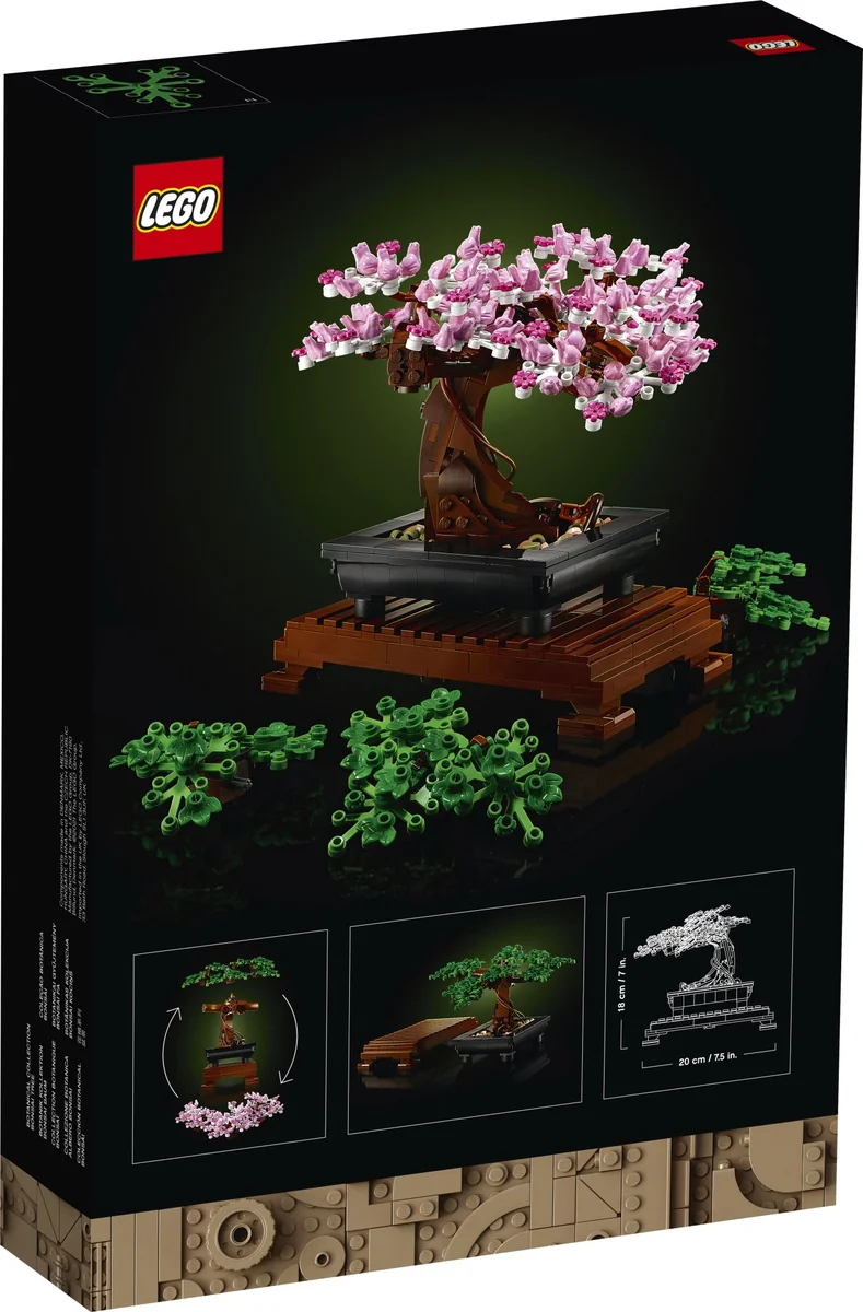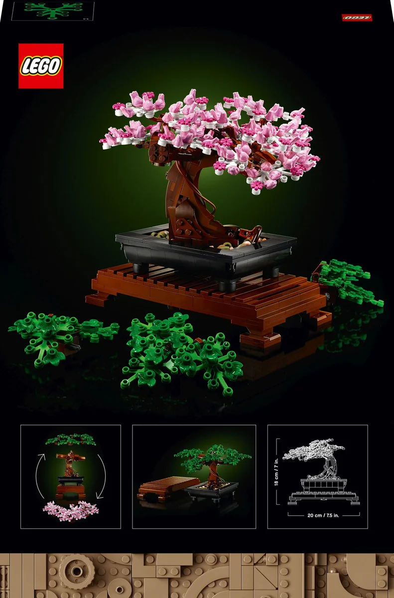 Mit 878 Teilen. Ab 18 Jahren. Seit Jahrhunderten fasziniert die Kunst des Bonsai Baumliebhaber auf der ganzen Welt. Mit dem LEGO Bonsai Modellbausatz für Erwachsene kannst auch du diese uralte Kunst zelebrieren. Genieße das Gefühl der Ruhe, während du den künstlichen Bonsai Baum sorgfältig mit grünen Blättern oder rosa Kirschblüten gestaltest. Wenn du Lust auf Abwechslung hast, kannst du die farbigen Kronen ganz einfach austauschen und so einen völlig neuen Look kreieren. Sieh dir die rosafarbenen Blüten genauer an - siehst du die winzigen Frösche, aus denen jede Blüte besteht? Das LEGO Bonsai Modell für Erwachsene enthält ein rechteckiges Pflanzgefäß und einem LEGO Sockel in Holzlatten-Optik und ist eine hübsche Dekoration, die sich in jedem Zimmer oder Büro sehen lassen kann. Egal ob als Geschenk zum Geburtstag oder zu Weihnachten für Männer, Frauen, Freunde oder Verwandte oder als Geschenk für dich selbst - diese Zimmerdekoration wird dich von seiner Schönheit verzaubern. Die künstliche Pflanze aus der LEGO Botanik Kollektion enthält Blätter aus pflanzlichem Kunststoff, der aus nachhaltig angebautem Zuckerrohr hergestellt wird. Die LEGO Botanicals Sets enthalten eine Auswahl an Modellen für Liebhaber von Kunstpflanzen und sind einzigartige Geschenkideen zum Geburtstag oder zu Weihnachten. 18 cm hoch, 21 cm lang und 20 cm breit. Enthält 878 Teile.
