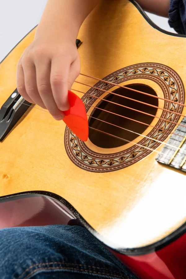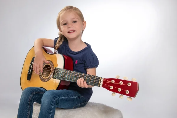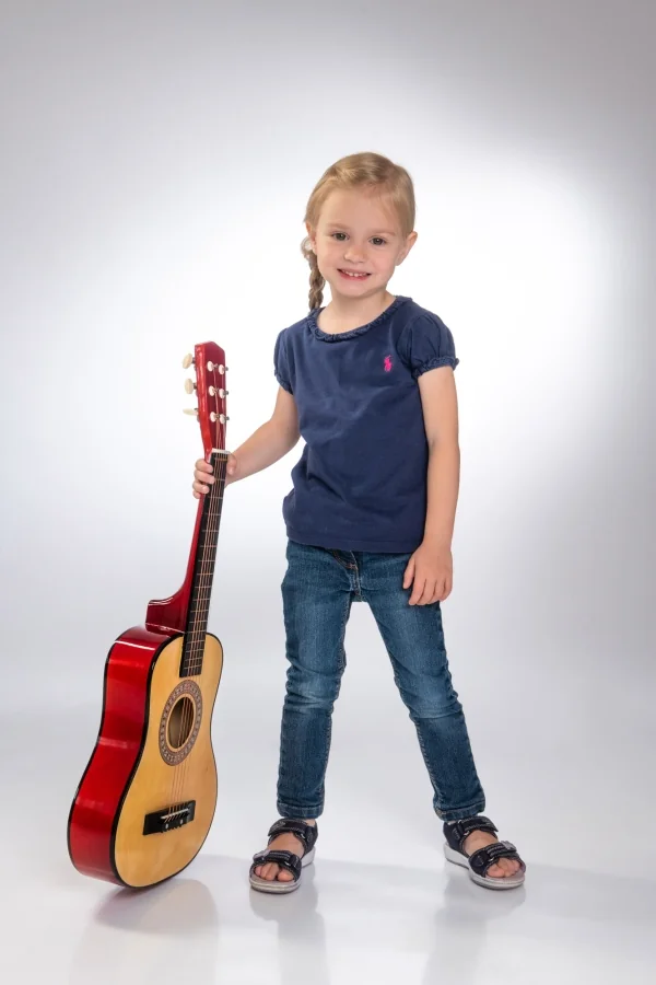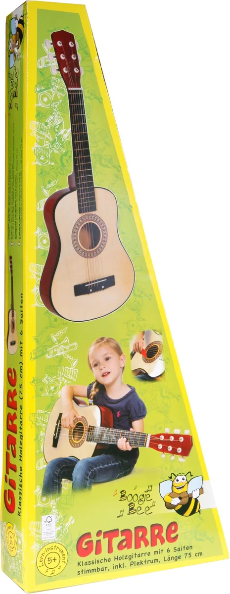 Mit 6 Saiten, stimmbar. Inkl. Plektrum. Größe ca. 75 cm. Ab 5 Jahren. Boogie Bee Holzgitarre ist eine klassische Gitarre mit 6 Saiten, stimmbar. Länge ca. 75 cm. Inklusive Plektrum und Spielanleitung mit Liedern, wie z.B. Oh Susanna und Happy Birthday. Für Kinder ab 5 Jahren.