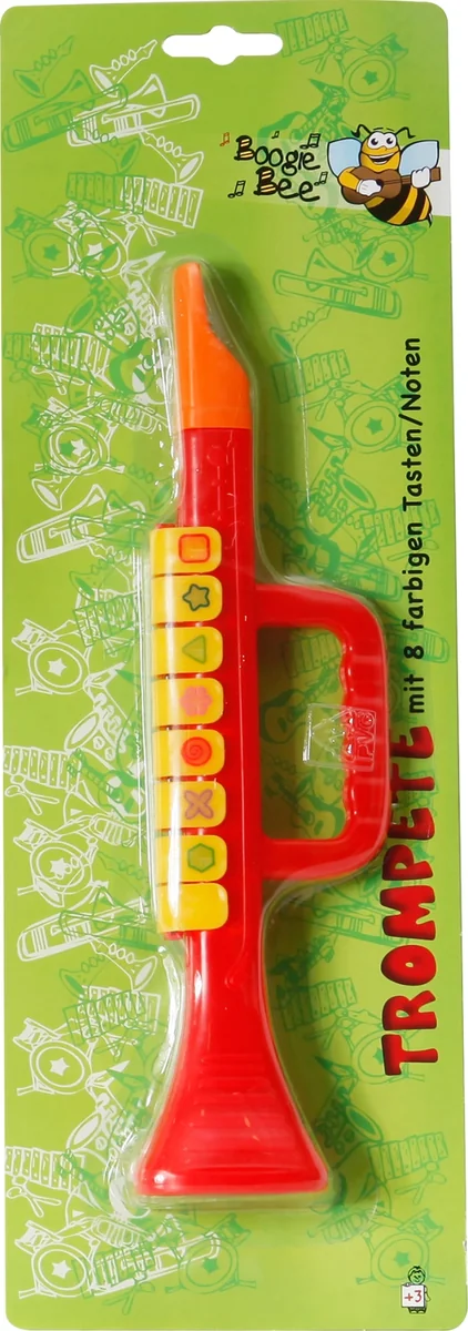 Mit 8 farbigen Tasten/Noten. Länge: ca. 27 cm. Für Kinder ab 3 Jahren. Boogie Bee Trompete in Rot mit 8-farbigen Tasten/Noten. Maße ca. 27x7,5x3,5 cm. Für Kinder ab 3 Jahren.