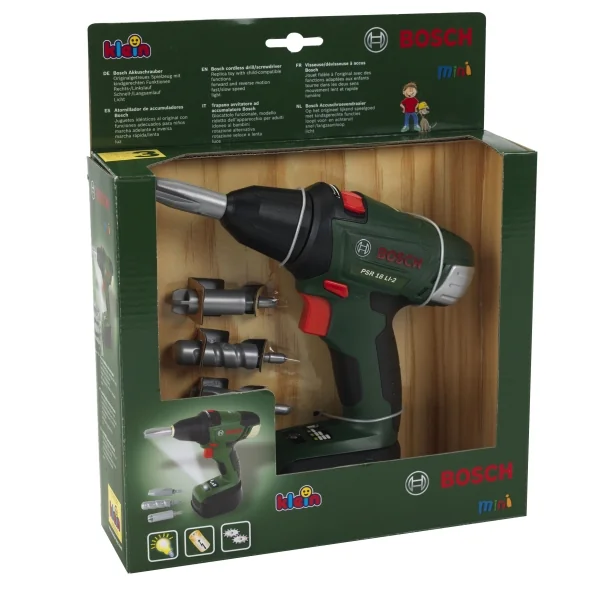 Mit Licht- und Soundfunktion. Batterien erforderlich. Ab 3 Jahren. Bosch Akkuschrauber Spielzeug mit kindgerechten Funktionen - Batteriebetrieben - mit rotierendem, auswechselbarem Bohrer/Schrauber - Rechts-/Linkslauf - mit realistischem Bohr-/Schraubgeräusch und Licht - Mit auswechselbaren Aufsätzen - Originalgetreue Nachbildung im Bosch Design - Passend zu den Bosch und Technico Schraubsystemen - Geeignet für Kinder ab 3 Jahren