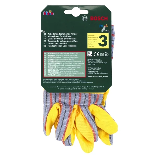 Gehören zur Grundausstattung von jungen Handwerkern! Ab 3 Jahren. Bosch Arbeitshandschuhe, Paar - Hochwertige Arbeitshandschuhe in Einheitsgröße - Warnung! Diese Arbeitshandschuhe sind nur ein Spielzeug. Sie haben keine Schutzfunktion - Geeignet für Kinder ab 3 Jahren