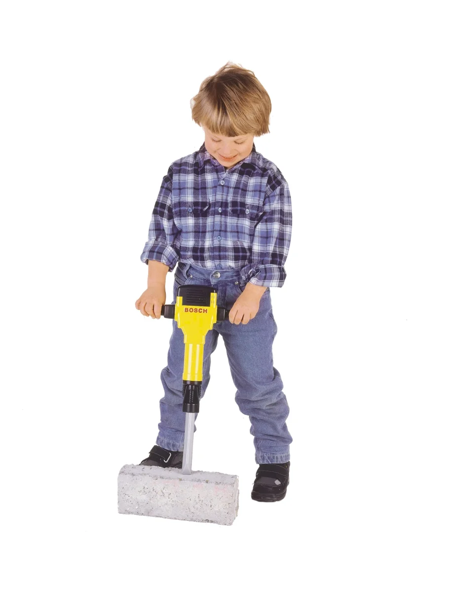 Bosch Presslufthammer. Auf- und Abwärtsbewegung des Bohrmeißels - Mit Motorsound und Blinklicht. Ab 3 Jahren. Bosch Presslufthammer Spielzeug mit kindgerechten Funktionen - Batteriebetrieben - Auf- und Abwärtsbewegung des Bohrmeißels - Mit Motorsound und Blinklicht - Beim Aufdrücken des Bohrmeißels: - Hammersound - Originalgetreue Nachbildung im Bosch Design - Geeignet für Kinder ab 3 Jahren