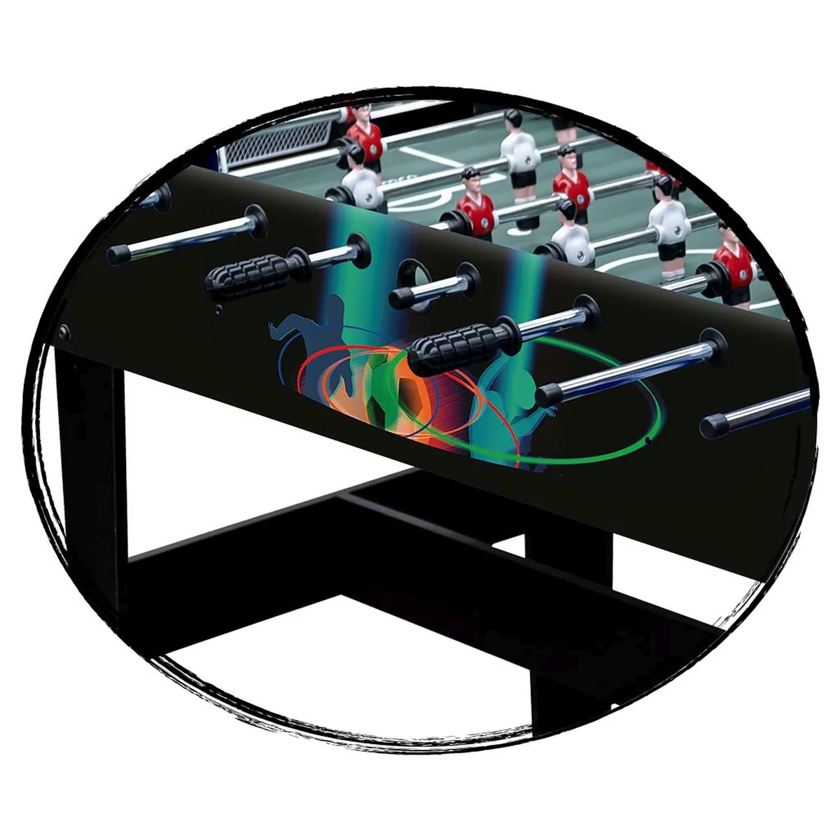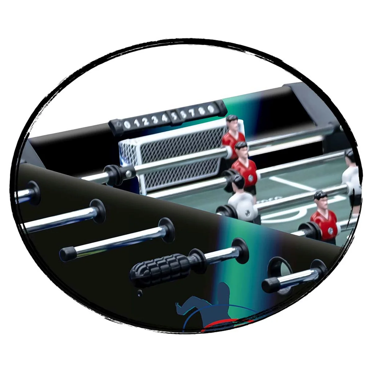 Der CARROMCO KICKER TUCANA-XT ist ein Tischfußballspiel im attraktivem Design. * Stabile Beinkonstruktion mit Querstreben und einer Mittelstrebe * 12,7 mm Spielerstangen und Sicherheitskappen * Originelle Metall-Netztore * Seitlicher Balleinwurf * Ballrücklauf an Kopfseite * Manueller Torzähler Zubehör: 2 Bälle - 32mm Ausführung: Bausatz Maße: 122 x 61 cm, Höhe: 83 cm Gewicht: 19 kg Spielfeld: 103 x 57,5 cm, Stärke 4,75 mm. Achtung! Dieser Artikel wird direkt vom Hersteller geliefert.