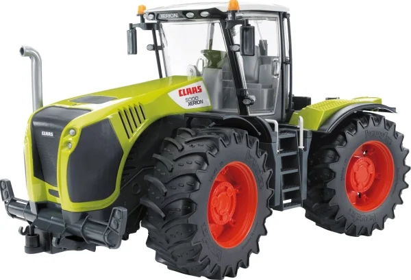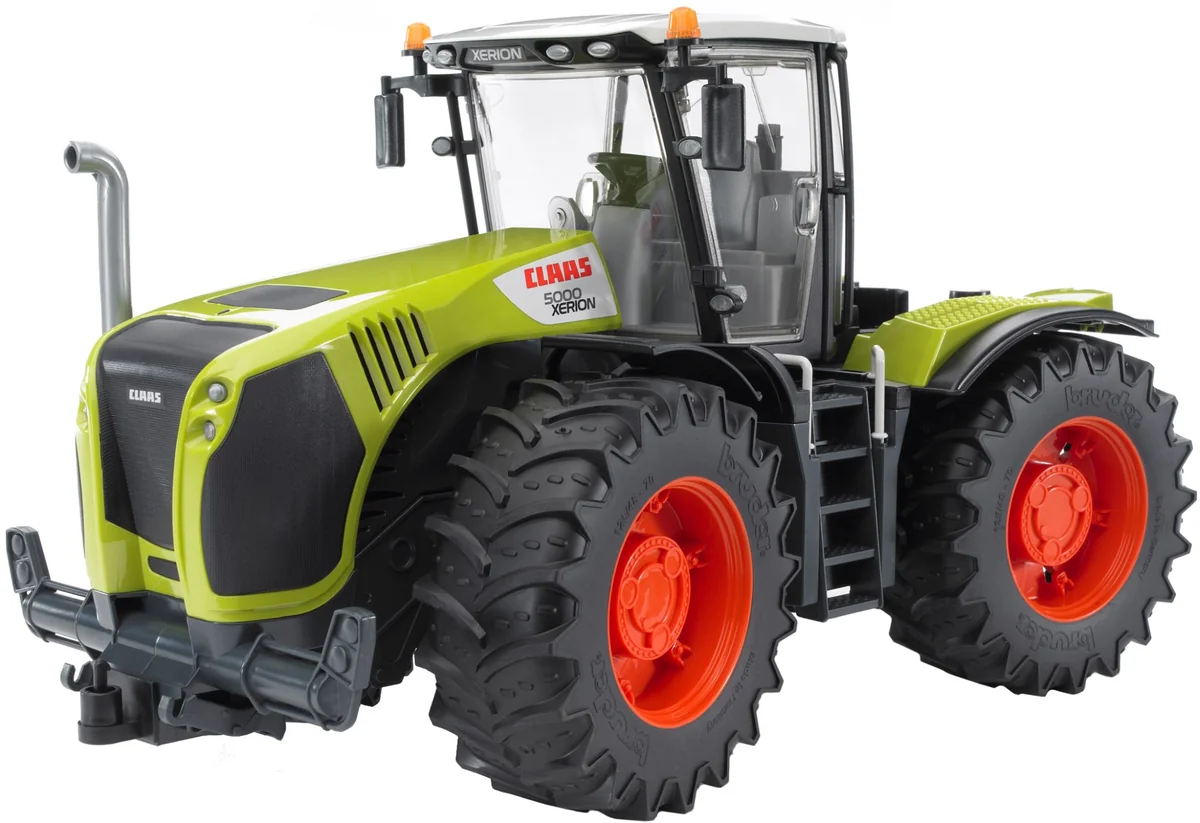 Mit drehbarem Führerhaus, 4-Rad- Lenkung, zu öffnenden Türen und höhenverstellbarer Heckkupplung. Ab 4 Jahren. Dass der Claas Xerion 5000 Power hat, das sieht man auf den ersten Blick. Alleine die Formgebung und die vier gleichgroßen Räder zeigen die Kraft, die in ihm steckt. Doch bei der Entwicklung des Originals kam es dem Hersteller darauf an, diese Kraft mit intelligenten Lösungen für einen flexiblen effizienten Einsatz zu verknüpfen. Daher erhielt der Xerion von der Firma Claas die Eigenschaftsbeschreibung ''Kraftintelligenz. Wie von BRUDER Spielwaren gewohnt, muss natürlich auch das Modell diese vorgelebten Eigenschaften wiedergeben. Somit wurden, wie auch schon bei anderen Modellen, Funktionen entwickelt, die dem Original gleichen, aber bei einem Spielzeug einmalig sind. Darunter fallen die bei BRUDER durch das Kabinenschiebedach mit einer Aufstecklenksäule lenkbaren Räder, auch bei zusätzlich drehbarer Kabine, ohne die Getriebeverbindung zu unterbrechen. Lenkbar sind bei diesem Modell, natürlich dem Vorbild folgend, alle 4 Räder. Beim normalen Einsatz lenken die Räder für einen möglichst engen Wendekreis gegenläufig. Einmalig ist auch, dass durch einen Verstellmechanismus am Fahrgestell das spurversetzte Fahren (Hundegang) des Originals nachgespielt werden kann. Neben diesen Besonderheiten besticht auch dieser Traktor durch die bei den BRUDER Großtraktoren gewohnten Eigenschaften wie verglaste Kabine, mit zu öffnenden Türen oder die höhenverstellbare Heckkupplung.