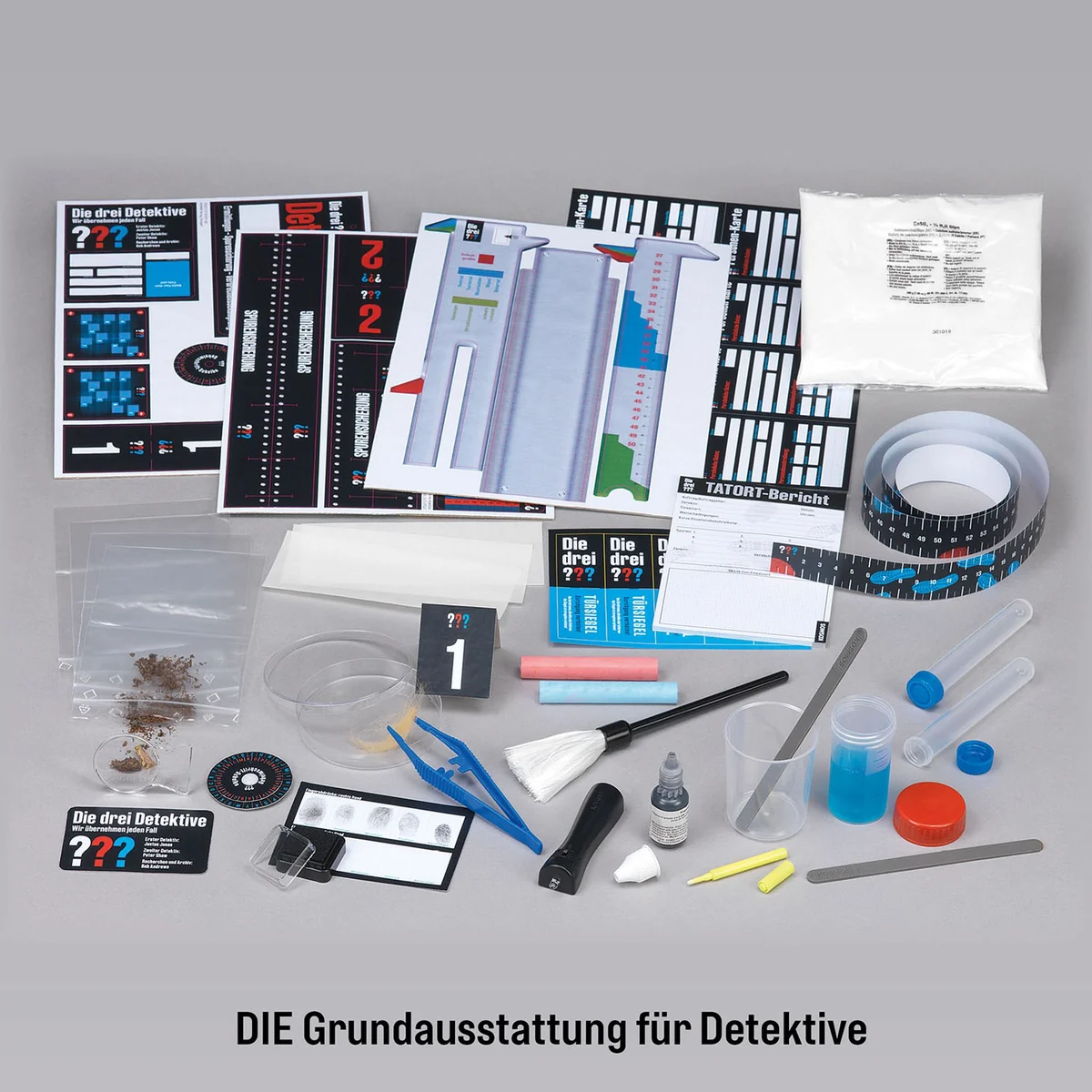 Macht Nachwuchs-Kriminalisten zu Meister-Detektiven! Mit über 30-tlg. Zubehör. Batterien erforderlich. Ab 8 Jahren. Ausgerüstet wie die Profis! Ab sofort aufregende Fälle lösen und genauso viel erleben wie Justus, Peter und Bob aus Rocky Beach. Den Tatort absichern und Beweise sammeln, Botschaften entschlüsseln und Spuren auswerten, Verdächtige verfolgen und Verstecke aufspüren: In diesem Koffer steckt alles, was Nachwuchs-Agenten für ihre Ermittlungen benötigen, z.B. UV-Lampe, Lupe, Geheimstift, Fingerabdruck-Pulver und -Pinsel und vieles mehr. Viele Tipps, Tricks und Rätsel finden Kinder ab 8 Jahren im umfangreichen Handbuch. Das Detektiv-Set ist ein cooles Geschenk und Mitbringsel für Rollenspiel-Fans. Ran an die Arbeit es gibt viel zu tun!