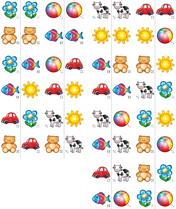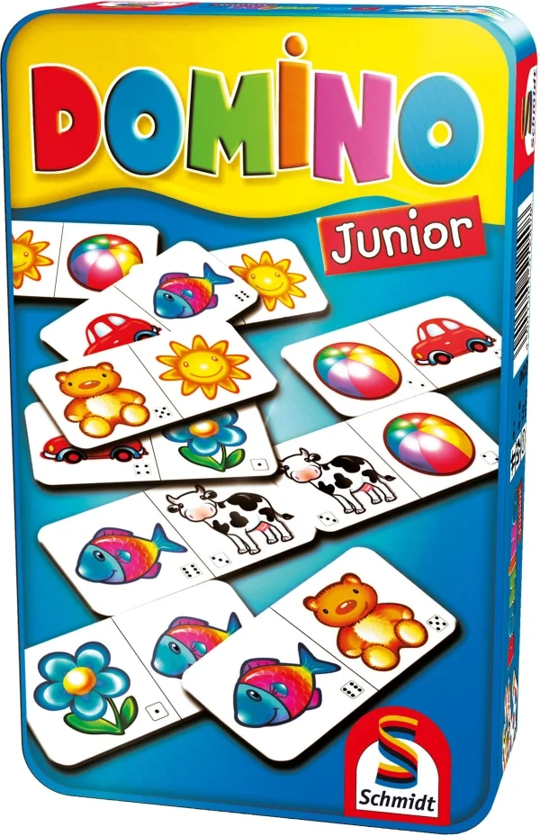 Anlegespiel. Für 2-6 Spieler. Ab 3 Jahren. Kärtchen für Kärtchen entsteht eine bunte, immer länger werdende Kärtchenreihe. Die Kinder lernen, Motive zu erkennen und sie entsprechend zuzuordnen. Mit den neuen bunten Motiven in der Metalldose macht der beliebte Legespiel-Klassiker mit stabilen Domino-Kärtchen jetzt noch mehr Spaß. Für 2 bis 6 Spieler. Ab 3 Jahren.