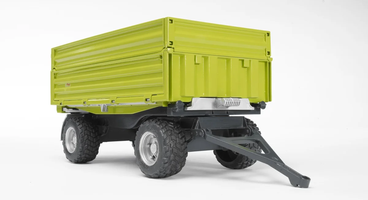 Mit Aufsteckbordwand, Deichsel mit Drehkranz drehbar, kippbar nach 3 Seiten, Heckkupplung und Profilreifen. Hochwertiger ABS Kunststoff. Maßstab: 1:16. Ab 3 Jahren. Einzigartig im Spielwarensegment ist der BRUDER 3-Seitenkippanhänger. Es ist erstmalig gelungen die kom-plexe Steuerung der nach 3 Seiten zu kippenden Plattform einfach und kindgerecht zu steuern. Der Anspruch realistische Funktionen mit herausragender Bespielbarkeit zu kombinieren war unsere Herausforderung. An der Frontseite des Kippers befindet sich der Schiebesteller der innovativen Kippeinheit. Bewegt man den Stell-hebel auf die linke Seite, lässt sich die Plattform nach links kippen, bewegt man den Stellhebel auf die rechte Seite kippt der Anhänger nach rechts. Zurück in die Mitte gerückt, gibt die Stelleinheit nur die Kippmöglichkeit nach hinten frei. Kinderleicht also, intuitiv mit dem Stellhebel die Richtung angeben und der Anhänger lässt sich nur in diese Richtung kippen. Zu einem 3 Seitenkipper gehören natürlich auch oben angeschlagene, zu öffnen-de Bordwände. Die kleinen Landwirte werden ihre Freude haben, wie beim großen Vorbild die Ernte vom An-hänger in z.B. das Vorratssilo zu kippen. Die Bordwandverriegelung ist ebenso einfach wie der Kippmechanis-muß zu betätigen. Auf jeder der Kippseiten befindet sich ein Verriegelungsschieber unterhalb der Bordwand. Mit einem kleinen Ruck in die Öffnungsrichtung geschoben und schon wird die Bordwand frei gegeben. Wie bereits erwähnt kinderleicht. Aber das ist noch nicht alles. Die Aufsteckbordwände lassen sich natürlich ebenfalls abnehmen. Wodurch die Bordwände auch in konventioneller Art und Weise, mit Drehachse unten an der Plattform, geöffnet werden kön-nen.