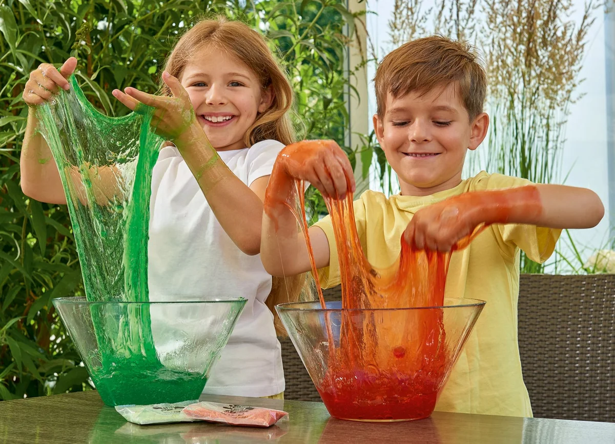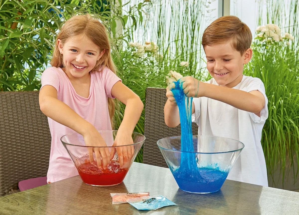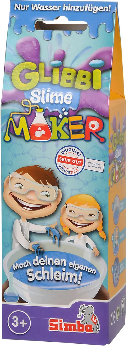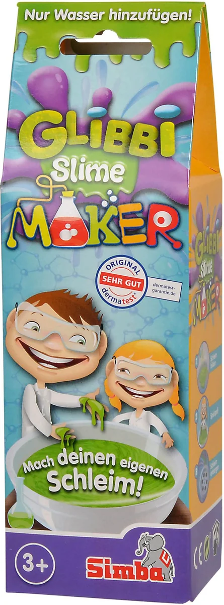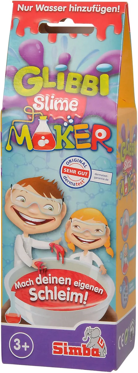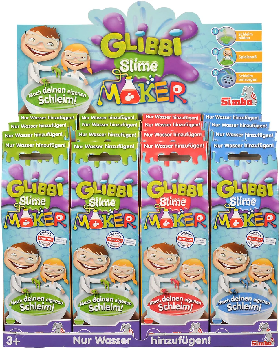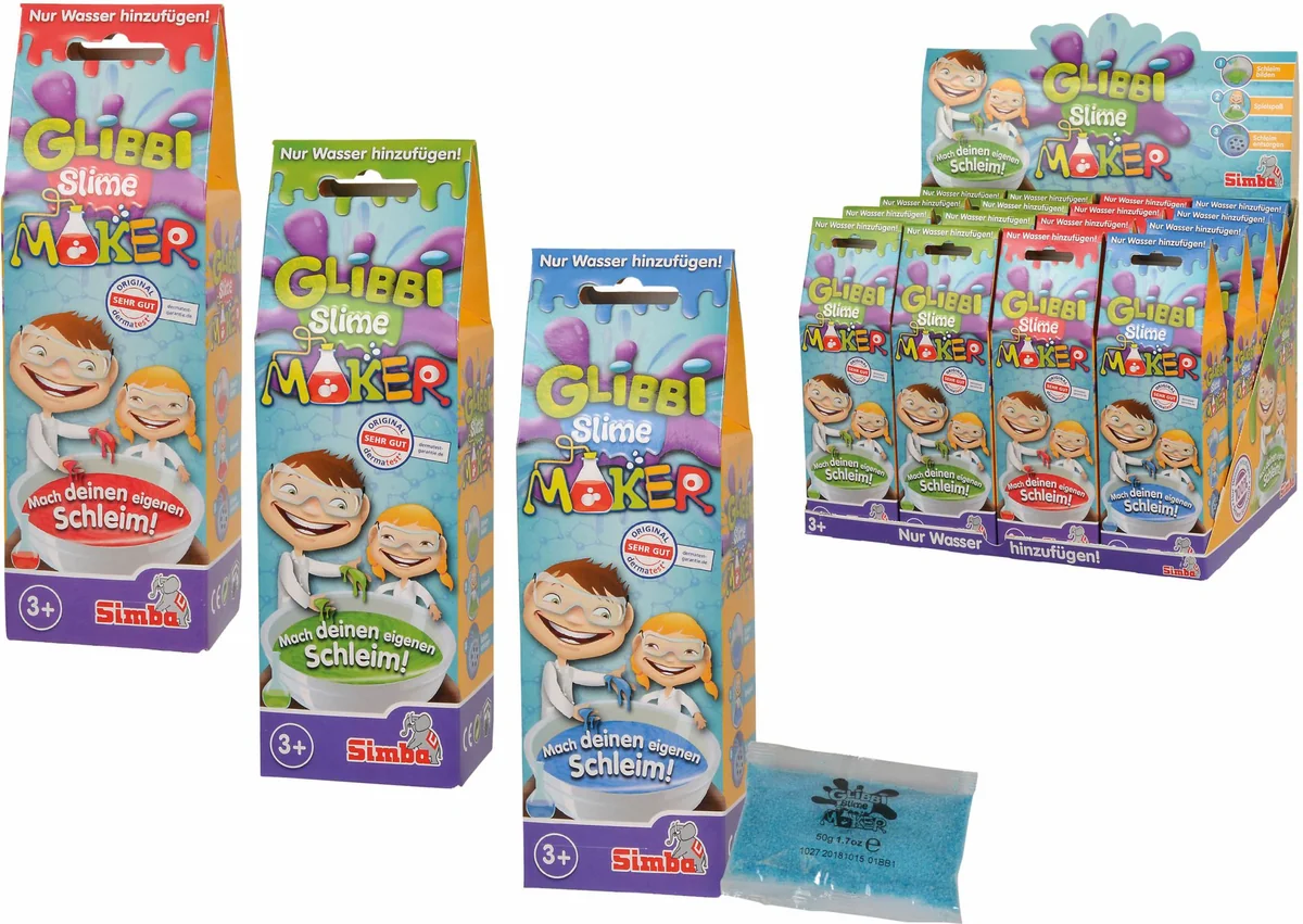 Mache eigenen Slime! Nur Wasser hinzufügen. In den Farben rot, grün und blau erhältlich. Ab 3 Jahren. Mit Glibbi Slime Maker könnt ihr euch herrlichen Glibbi Schleim in drei tollen Farben zum Spielen und Herumexperimentieren zaubern. Einfach Glibbi Pulver in das Wasser einrühren und im Nu entsteht der tolle Glibbi Schleim und der Spielspaß für Groß und Klein kann beginnen. Den Schleim nach dem Spielen mit Wasser verdünnen und in den Abfluss gießen. Glibbi Slime Maker ist in den Farben Grün, Rot und Blau erhältlich und dermatologisch getestet. Für Kinder ab 3 Jahren geeignet.