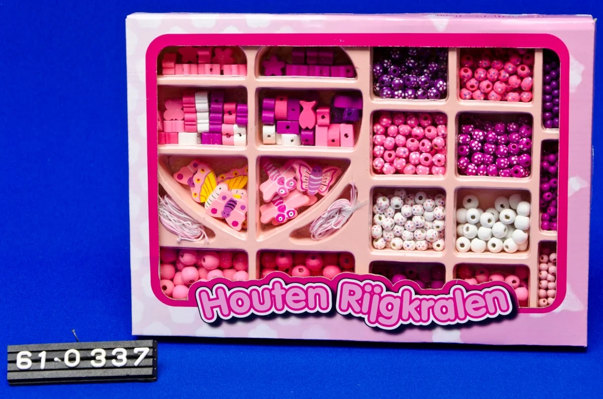 Die Perlen sind farblich aufeinander abgestimmt in Rosa Tönen. Inklusive Schnur. Ab 3 Jahren.