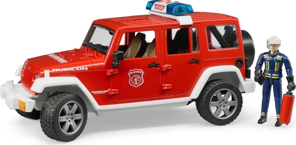 Bei der Koordination von Feuerwehr-Einsätzen, sowie bei kleinen Notfällen wird das Feuerwehr Einsatzfahrzeug benötigt. Durch seine Robustheit und Geländegängigkeit ist der Jeep Wrangler Unlimited Rubicon die ideale Basis für diesen Zweck. Der Leiter vom Dienst in seinem Führungsfahrzeug koordiniert den Einsatz beim Retten von Menschenleben und der Brandbekämpfung und legt aber auch selbst Hand an. Das BRUDER-Modell ist wie das Original, mit geländegängigen, gefederten Achsen ausgestattet. Die Achsschenkellenkung mit Lenkstangenverlängerung durch das Fahrzeugdach ermöglicht das Nachspielen der Einsatzszenen. Türen, Motorhaube und Laderaum lassen sich öffnen und schnell beladen. Die Feuerwehrfigur lässt sich durch beiliegendes Zubehör, wie Feuerlöscher und Funkgerät, ausstatten. Die Einsatz-Lichteinheit mit Sirene auf dem Dach macht den Weg beim Einsatz frei. Neben drei verschiedenen Sirenenlauten kann auch das Motorgeräusch des Fahrzeugs erzeugt werden. So realistisch kann im Kinderzimmer der Feuerwehr-Einsatz nachgespielt werden ''Just like the real thing ''Bei der Koordination von Feuerwehr-Einsätzen, sowie bei kleinen Notfällen wird das Feuerwehr Einsatzfahrzeug benötigt. Durch seine Robustheit und Geländegängigkeit ist der Jeep Wrangler Unlimited Rubicon die ideale Basis für diesen Zweck. Der Leiter vom Dienst in seinem Führungsfahrzeug koordiniert den Einsatz beim Retten von Menschenleben und der Brandbekämpfung und legt aber auch selbst Hand an. Das BRUDER-Modell ist wie das Original, mit geländegängigen, gefederten Achsen ausgestattet. Die Achsschenkellenkung mit Lenkstangenverlängerung durch das Fahrzeugdach ermöglicht das Nachspielen der Einsatzszenen. Türen, Motorhaube und Laderaum lassen sich öffnen und schnell beladen. Die Feuerwehrfigur lässt sich durch beiliegendes Zubehör, wie Feuerlöscher und Funkgerät, ausstatten. Die Einsatz-Lichteinheit mit Sirene auf dem Dach macht den Weg beim Einsatz frei. Neben drei verschiedenen Sirenenlauten kann auch das Motorgeräusch des Fahrzeugs erzeugt werden. So realistisch kann im Kinderzimmer der Feuerwehr-Einsatz nachgespielt werden ''Just like the real thing''
