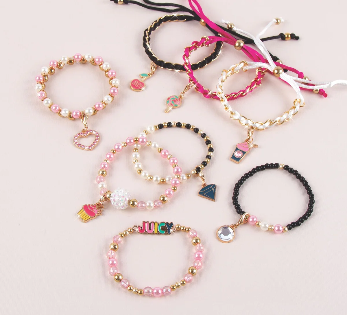 Die stylishen Juicy Couture Armbänder passen einfach zu jedem Anlass! Ob in der Schule, für die Party oder den BFF-Abend. Sie werten jedes Outfit auf und sind ein absoluter Hingucker. Mit diesem wunderschönen bunten und hochwertigem Schmuckset können zauberhafte Perlen und Kordeln nach Wunsch kombiniert werden. Für den unvergleichlichen Juicy Couture Look!