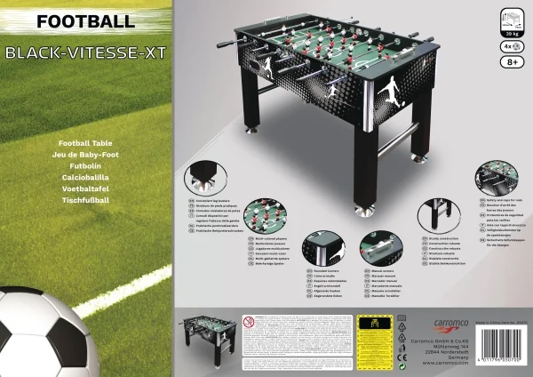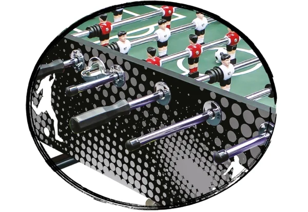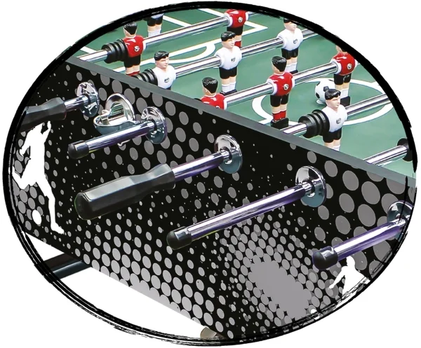 Die Pfostenbeine mit verchromter Rohr-Querverstrebung sorgen für viel Stabilität. Mit 4 Bällen. Maße ca. 140x75x89 cm. Ab 8 Jahren. Dieser große Kickertisch bietet auch großen Kickerfans viel Spaß. Die Pfostenbeine mit verchromter Rohr-Querverstrebung sorgen für viel Stabilität. Zubehör: 4 Bälle. Maße: 140 x 75 cm, Höhe: 89 cm. Gewicht: 39 kg.