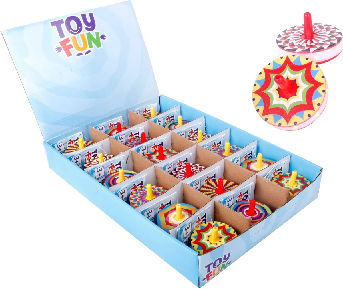 Kreisel Durchmesser ca. 5 cm, 4-fach sortiert im Display. Mit LED. Inklusive 3xAG3 Batterie. Für Kinder ab 3 Jahren.