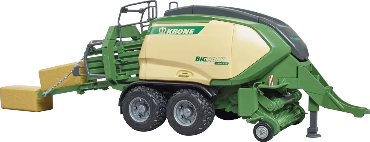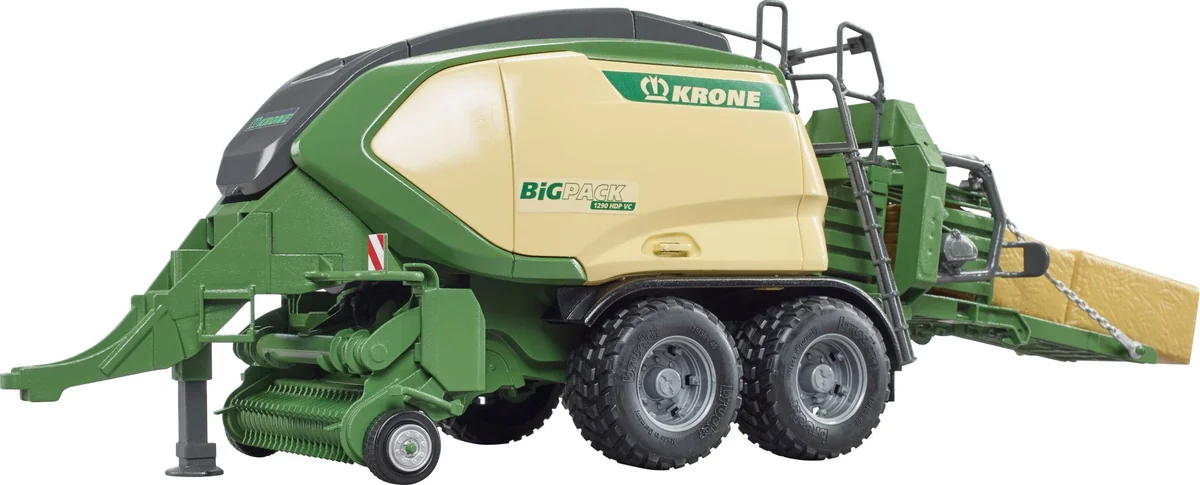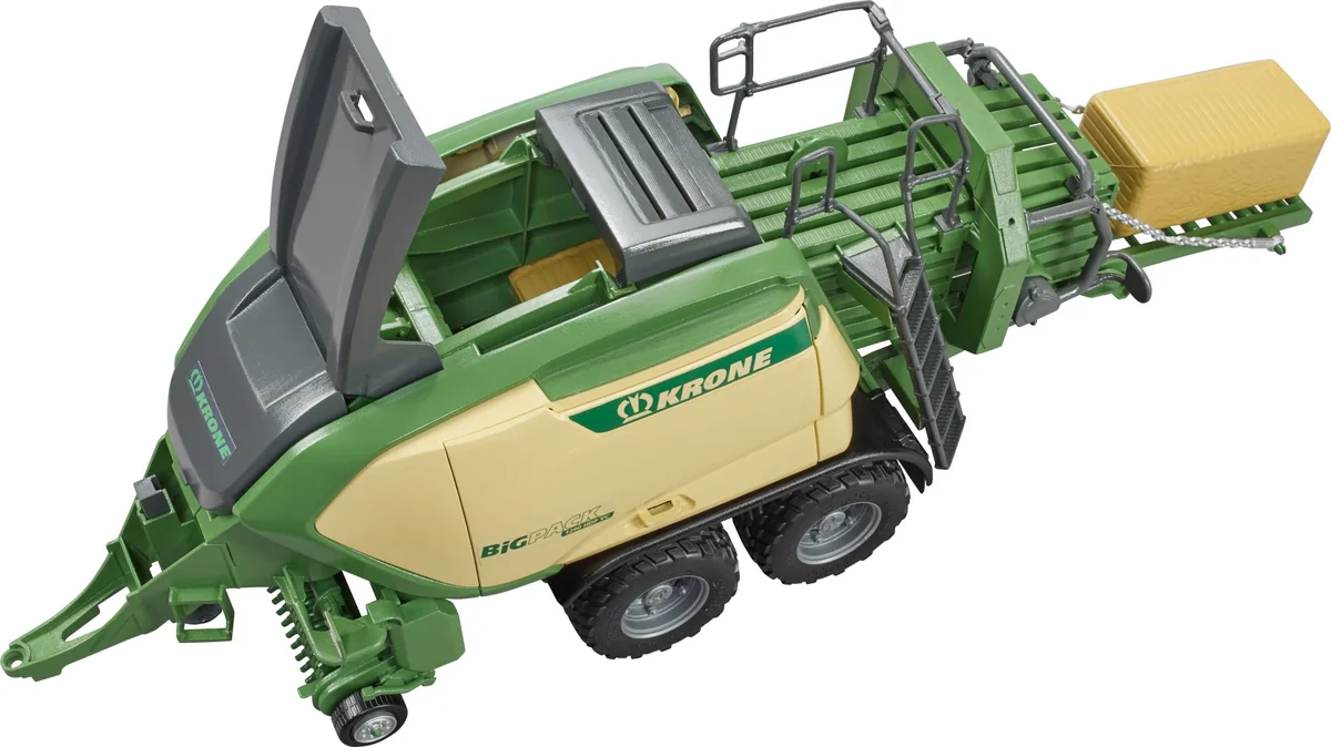 Die Firma Krone ist ein innovativer Hersteller von Erntemaschinen. Mit der neuen Baureihe der BiGPack Großpackenpressen zeigt KRONE einmal mehr, dass auch nach mehr als 25 Jahren die Innovationskraft keinesfalls nachlässt. Die BigPAck 1290 ist das Top Modell von KRONE und neu im landwirtschaftlichen Sortiment von BRUDER zu finden. Wie das Original, überzeugt auch das Spielzeug mit innovativen Funktionen. Der Pick-up ist abklappbar und wird über seitliche Räder angetrieben. Die Seitenklappen sind zu Öffnen und bieten Zugang zur detaillierten Mechanik. 2 Großballen können über die Mittelklappe eingelegt werden und die Presse transportiert, bei aktivem Pickup, diese automatisch zum Auswurf. Dieses tolle, neue Modell von BRUDER passt an alle Traktoren der 2000er, 3000er und 4000er Serie. Für noch mehr Spielspaß kann das Zubehör Quaderballen (Art.-Nr. 02342) hinzugefügt werden.