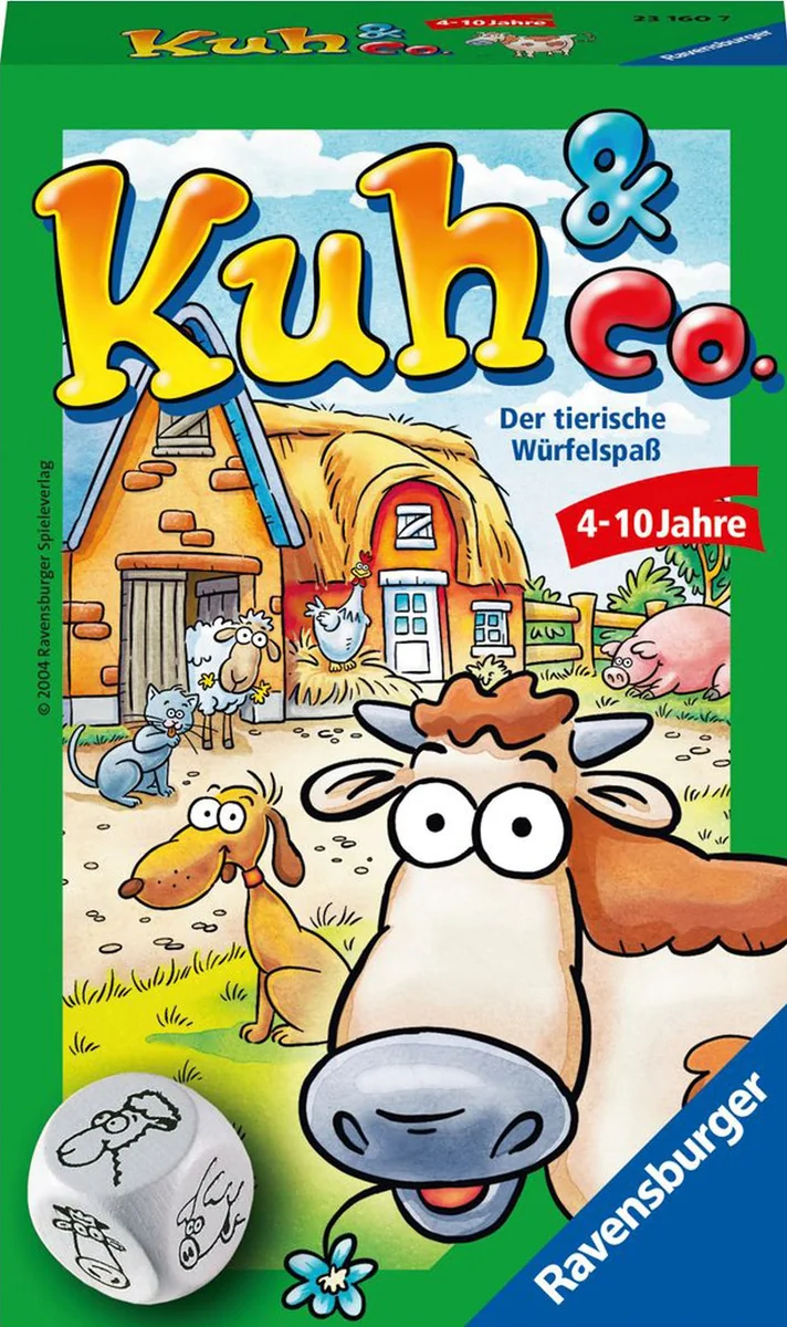 Würfelspiel. Für 2-6 Spieler. Von 4-10 Jahren. Der tierische Würfelspaß Kuh und co: Hund, Katze, Schwein, Schaf und Huhn. Wer spielt hier mit wem? Die Karten geben vor, welche Tierkombination gewürfelt werden muss. Wer die richtige Kombination hat, gewinnt die Karte. Dieses schöne Kinderspiel macht nicht nur eine Menge Spaß, sondern es wird spielerisch die Konzentration der Kleinen gefördert.Das Kinderspiel für 2-6 Spieler ist eine tolle Beschäftigung für alle ab 4 Jahren. Auch perfekt geeignet als Geburtstagsgeschenk oder Weihnachtsgeschenk für alle Kuh-Fans. Die Mitbringspiele von Ravensburger sind speziell auf die verschiedenen Altersgruppen abgestimmt und überzeugen durch eine hochwertige Qualität. Das kompakte Format eignet sich besonders gut zum Mitnehmen für unterwegs oder auf Reisen.