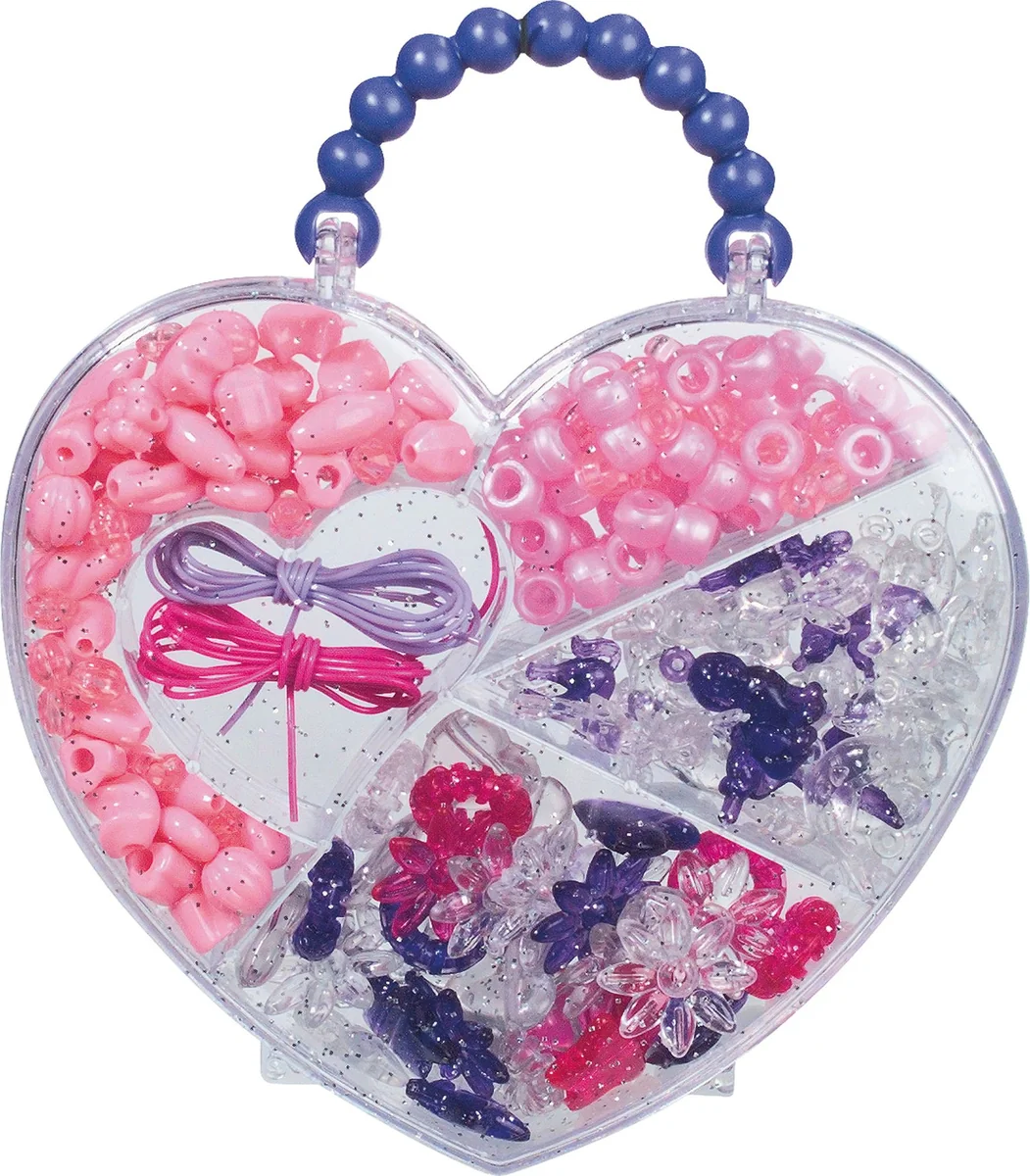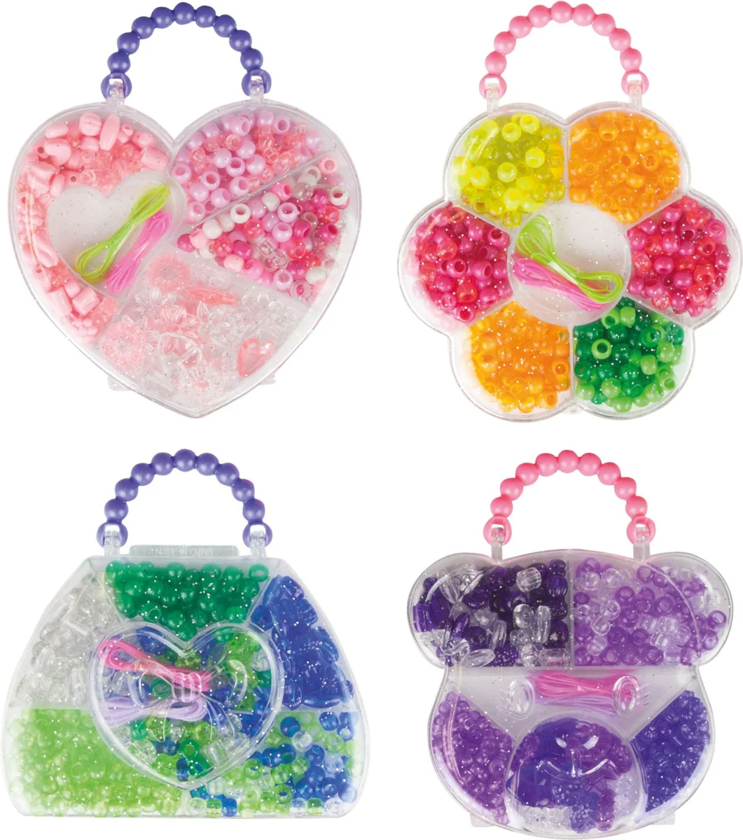 LENA® Fädelperlen Tasche, 4-fach farbig sortiert mit vielen bunten Perlen zum Basteln von Ketten, Armbändern oder Gesichtern für Scoudidou Tiere. Perlenhandtäschchen 10 cm. Geeignet für Kinder ab 3 Jahren. Jedes Produkt mit anhängender Produktinformation.