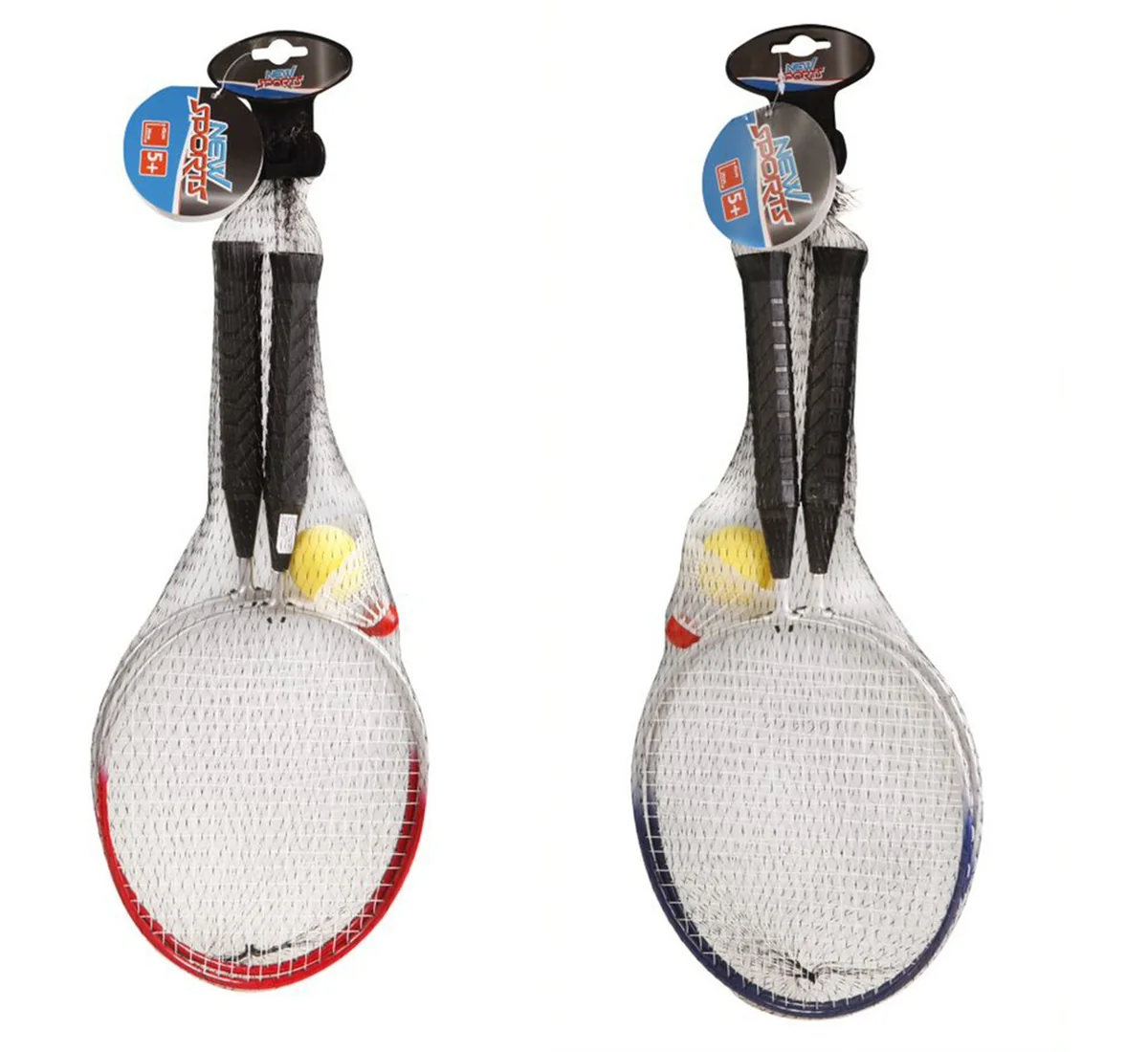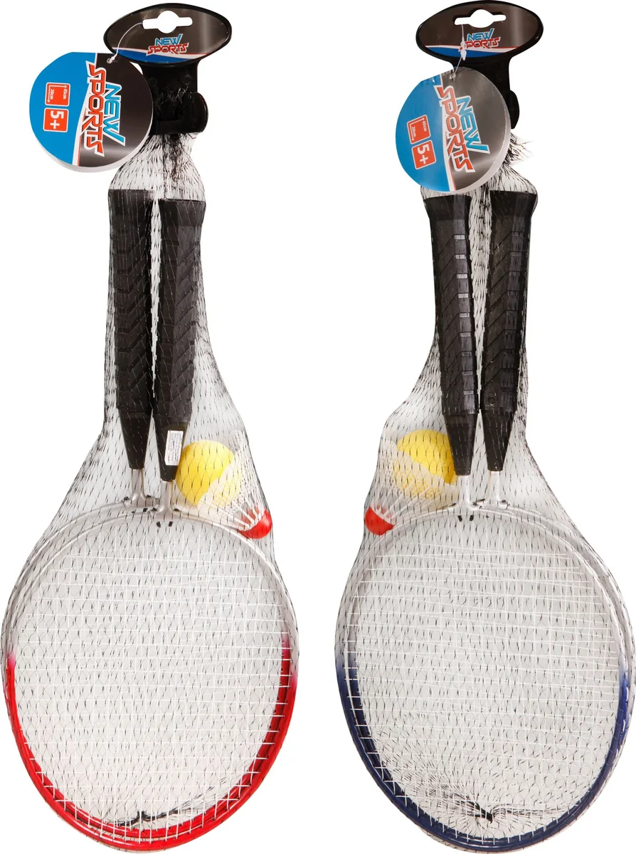 Badminton Set| 2-fach sortiert. Inhalt: 2 Schläger, 1 Federball und 1 Softball. Maße des Schlägers: 45 x 20 x 1,4cm Für Kinder ab 5 Jahren. New Sports Badminton-Set Kids, mit Federbällen. Bestehend aus 2 Schläger, 1 Federball und 1 Softball. 2-fach sortiert. Maße 45,5x20x1,4cm. Für Kinder ab 5 Jahren.