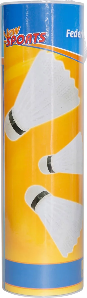 New Sports Federbälle Profi, 6 Stück in einer Dose. Der Kopf besteht aus weichem Kork und die Flügel aus Nylon. Maße: 8x7,2cm.