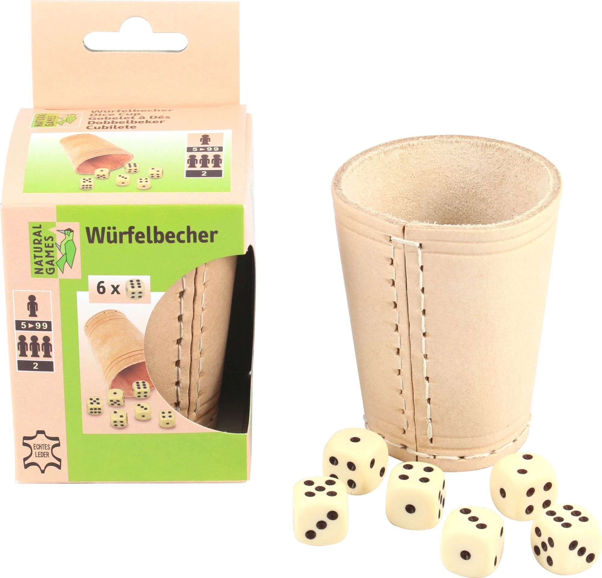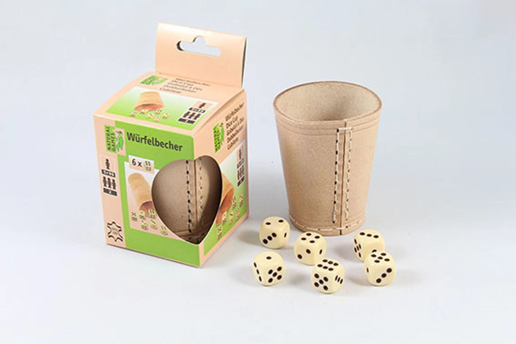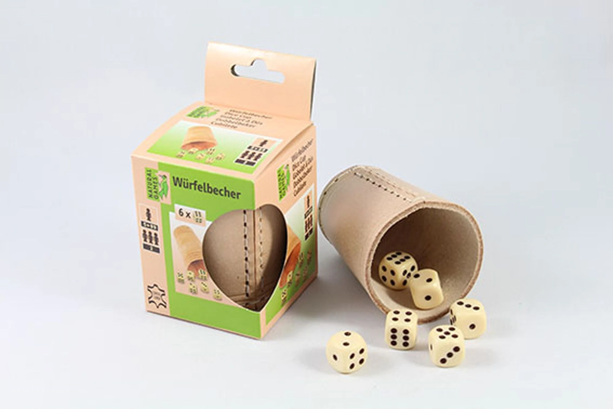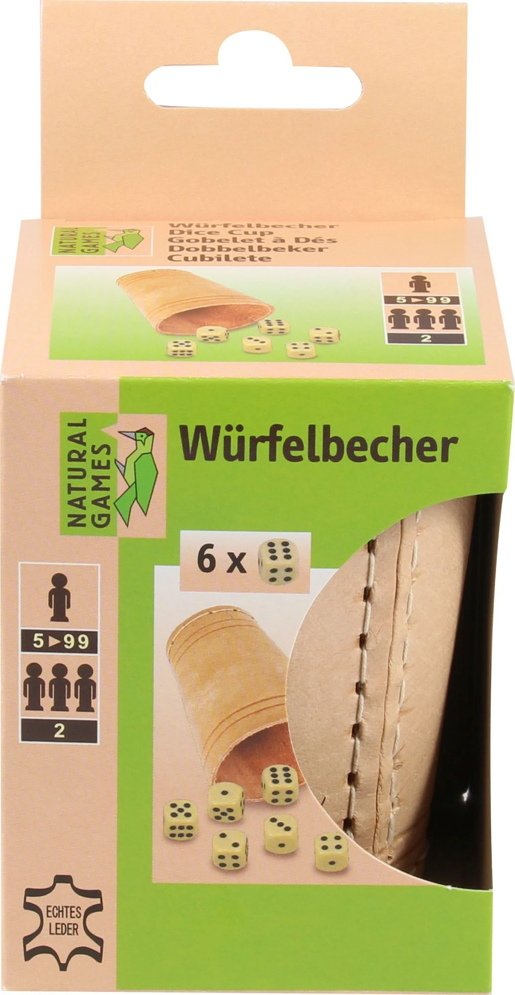 Natural Games Lederwürfelbecher mit 6 Würfeln