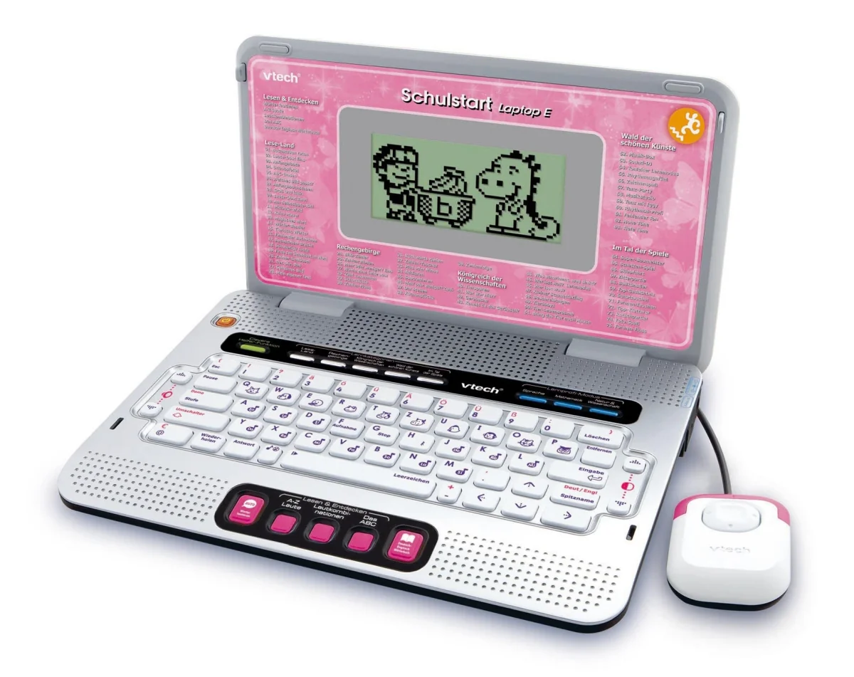 Lern-Laptop mit insgesamt 160 Lernprogrammen für Buchstaben & Wörter, Mathe, Natur & Wissenschaft, Sprachen uvm. 28 spezielle Englis ch-Lern-Programme fördern spielerisch das Fremdsprachenlernen. Ab 6 Jahren. insgesamt 160 Lernspiele in Deutsch und Englisch: 5 x Sprach-Tools, 23 x Buchstaben & Wörter, 16 x Mathematik,12 x Natur & Wissenschaft, 12 x Kreativität, 12 x Logik & Spiele Zweisprachig (Deutsch/Englisch) Mit 28 speziellen Sprachprogrammen zum Englisch lernen Lautiert die Buchstaben Mit Übungen zur Aussprache der Buchstaben und zum Lesen lernen Lernprofi-Modus: Sukzessives Lernen durch ansteigenden Schwierigkeitsgrad Tutorfunktion: Panel mit 5 Direktwahltasten zu Sprachtools (Laute, Lautieren, Lautkombinationen, ABC mit Beispielwörtern, Deutsch-Englisch Wörterbuch) Clevere Helfer-Funktion: In vielen Lernspielen erhält das Kind auf Wunsch zusätzliche Hinweise Inkl. Cursor-Maus Aktion-Intelligenz-Manager Lern-Erfolgs-System LES 3 Schwierigkeitsstufen Zubehör separat erhältlich: VTech Netzadapter und VTech Laptop-Tasche Demo-Batterien sind enthalten