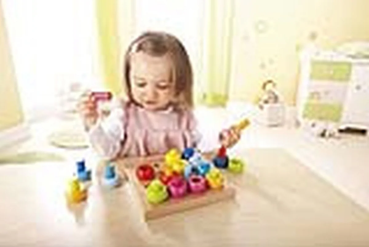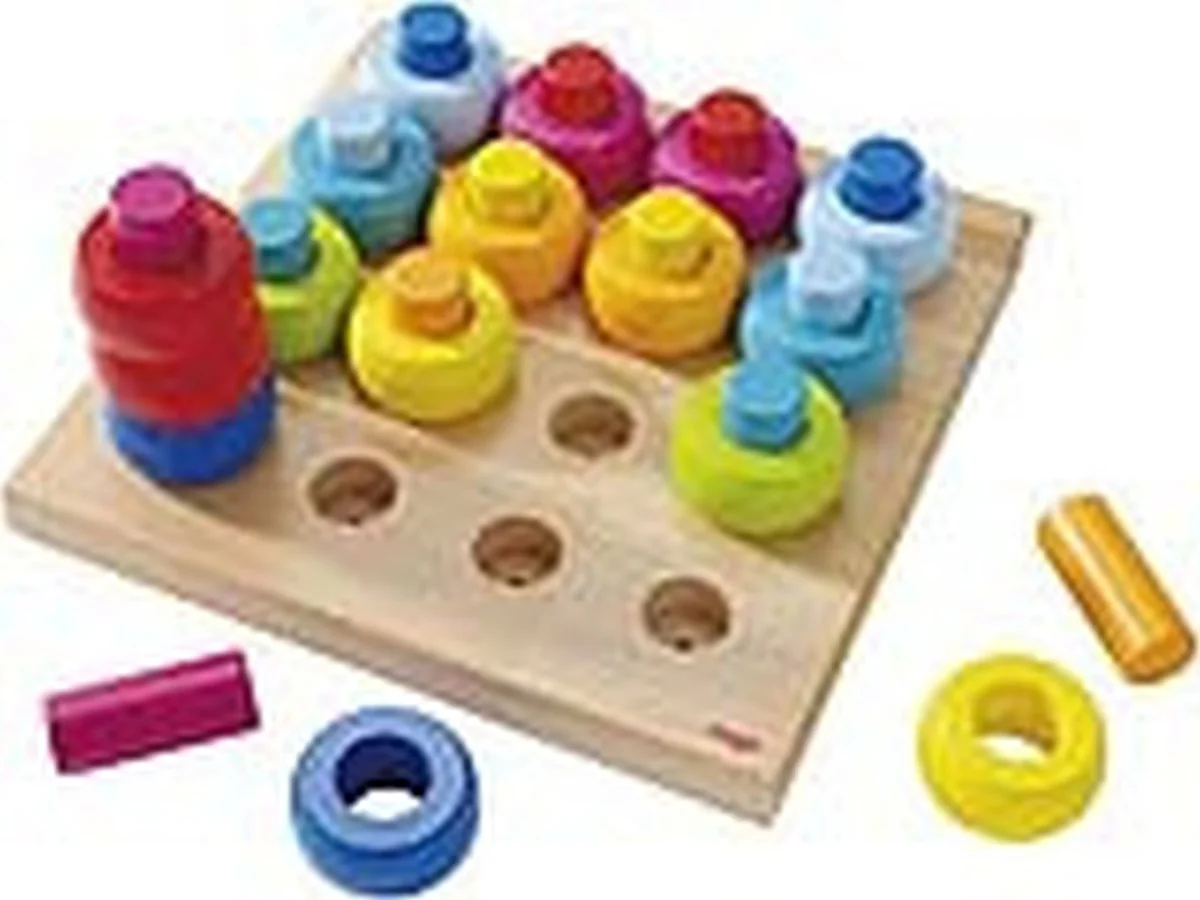 32-tlg. Die bunten Stecker und Ringe ermöglichen verschiedene Steckvarianten. Aus Buche. Ab 24 Monaten. Ein besonderes Erlebnis für kleine Farbenfreunde! Die bunten Stecker und Ringe ermöglichen verschiedene Steckvarianten. Mit Hilfe der Stecker lassen sich die Ringe sogar in die Höhe stapeln. Das Steckspiel eignet sich für das freie Spiel. Eine eigentlich einfache Idee - aber fast unendlicher Spielspaß: Auf eine Steckplatte aus stabilem Buchenholz lassen sich 16 farbige Stecker und ebenso viele farbige Ringe stecken. Denn in diesem Spiel steckt viel mehr, als man auf den ersten Blick denkt. Mit den Steckern und Kringeln lernen die Kleinen spielerisch Farben zu erkennen und zuzuordnen. Die Stecker und Ringe trainieren die Motorik. Die vielfältigen Kombinationsmöglichkeiten und Muster, die sich mit den acht Farben stecken lassen, regen die Fantasie an. Kreative Baumeister können die Ringe sogar in die Höhe stapeln. Selbst Zählen können kleine Farbenfreunde beim Spielen lernen. Wie viele blaue Ringe gibt es und wie viele grüne Stecker? Lassen Sie sich überraschen, was noch alles in diesem Spiel steckt. Ca. 19 x. 18,5 cm. 32 Teile. Material Buche. Ab 2 Jahren.